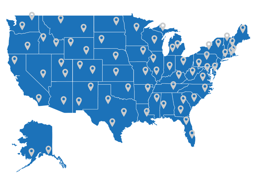 You can meet your French Bulldog (Frenchie) puppy at our home in northern Utah or at the Salt Lake City airport, or you can have your puppy delivered with one of our puppy nannies to most major U.S. airports for very reasonable fees. We have delivered numerous puppies to Alaska and Canada as well. We do not ship to Hawaii due to the extensive quarantine period required by the state, and we do not ship any of our puppies outside of North America. As the map indicates, we have placed many puppies in every state in the union.