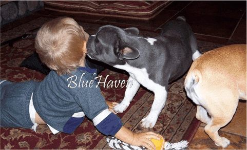 We LOVE our French Bulldogs – they are family members! Frenchies are fantastic people-dogs who love everyone, including children. As you can see our pups are well socialized with people and canines alike.