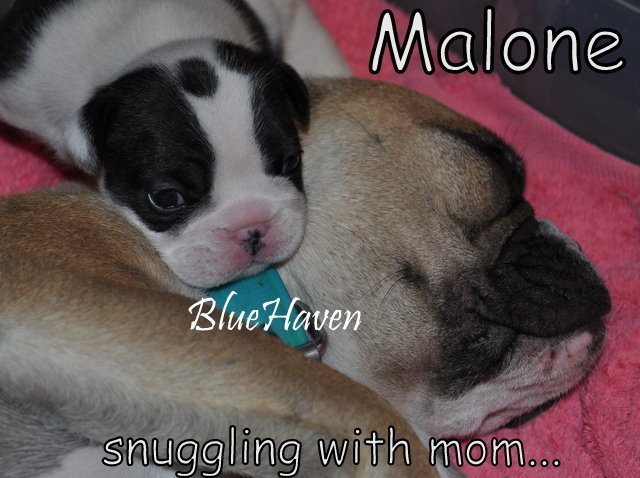 Sweets’ litter also has a good example of a heavy black brindle pied (Ava) and a light brindle pied (Debbie). You can see them starting at the 2:55 mark.
