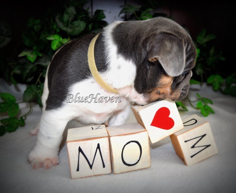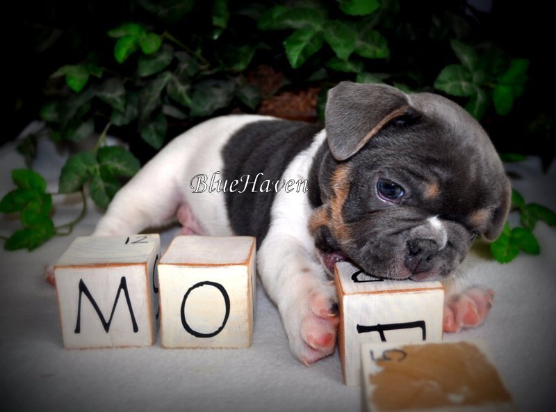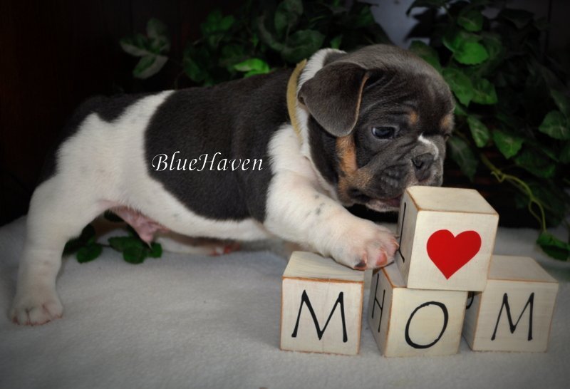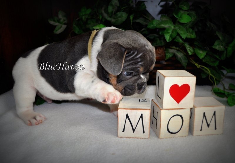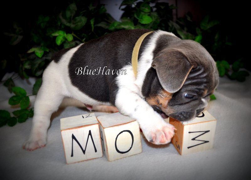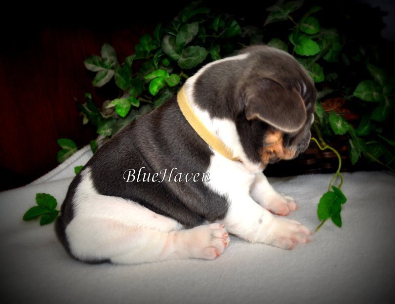 We are proud to introduce BlueHaven’s first blue & tan pied, Hop! His genetics have been confirmed and he is a very rare boy indeed. Because he is a pied you will not see the tan points on his lower legs but look at the beautiful tan points on his face. This boy is full of spunk and personality and seems to know he is pretty special.