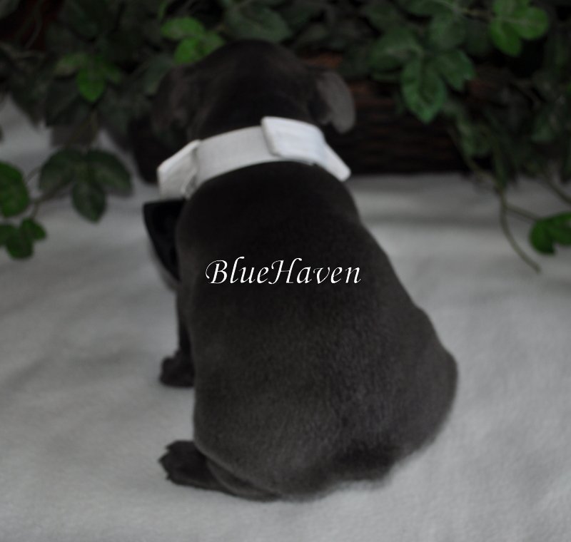 Beauty and Shazam had this wonderful litter of pure blue and pure black puppies (two of which we held back for our breeding program). Both colors have beautiful sleek coats with no brindling. We refer to the blues as blue grays, whereas the lilacs we refer to as silver grays. Whereas the black brindles sometimes have a brownish hue, pure blacks are a midnight black with not lighter hairs, except for a small white patch on their chests, and possibly a tuft of white hair somewhere else on their body.