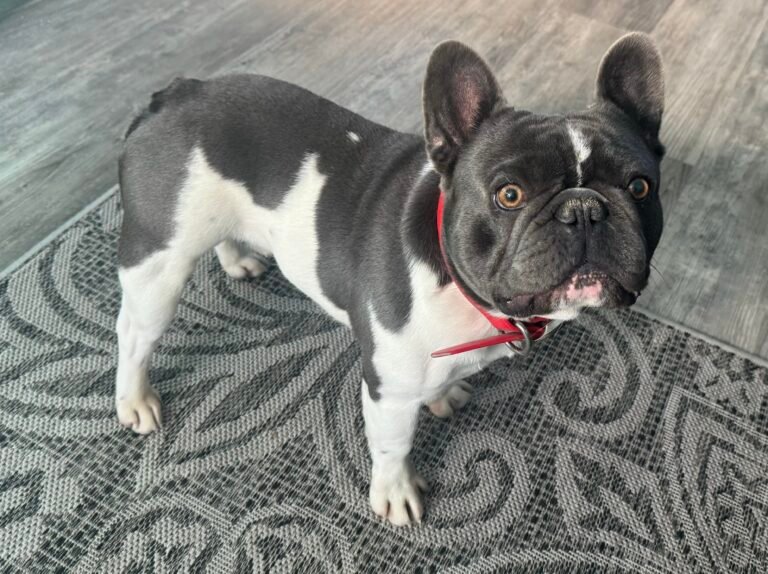 We are pleased to introduce Admiral into our breeding program. As you can see, he is a very handsome boy out of Shazam and Sloane, with excellent conformation, to go along with his sweet and playful disposition. He is also the grandson of Groot, so you can see where he gets his wonderful qualities. Since he is a pure blue pied, who also carries cream, brindle, and chocolate, he can produce virtually every color that Frenchies come in depending on who we breed him to. We are very excited to see the gorgeous puppies he produces.